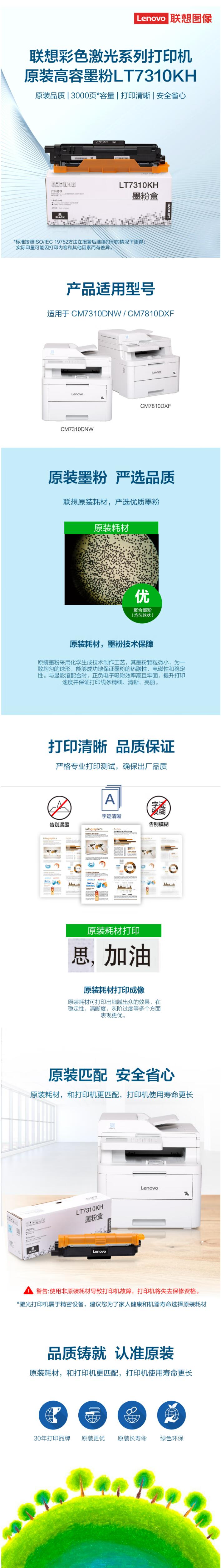 联想(Lenovo)LT7310KH黑色高容量原装墨粉盒(适用于CM7310DNW/CM7810DXF彩色激光打印机) 黑色