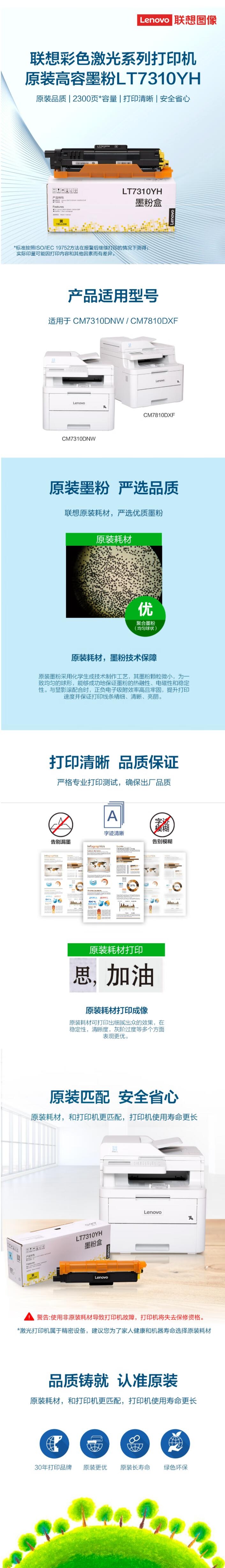 联想(Lenovo)LT7310YH黄色高容量原装墨粉盒(适用于CM7310DNW/CM7810DXF彩色激光打印机) 黄色