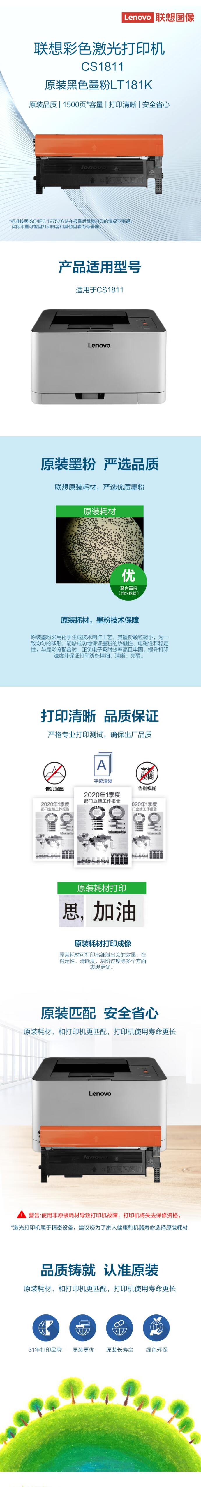 联想(Lenovo)LT181K黑色原装墨粉(适用于CS1811打印机) 黑色