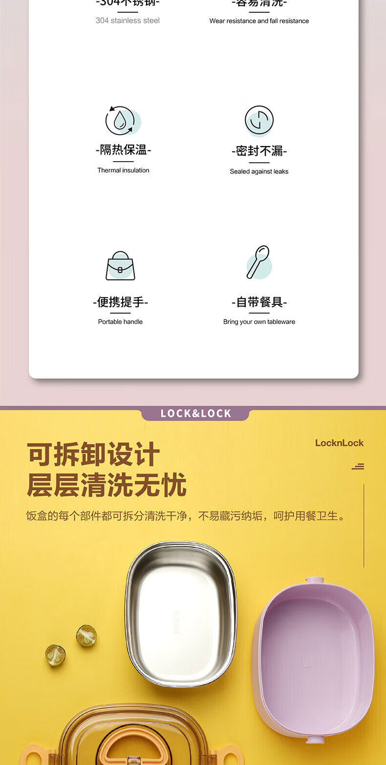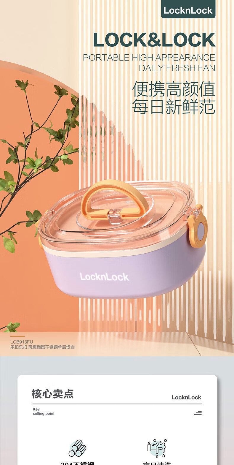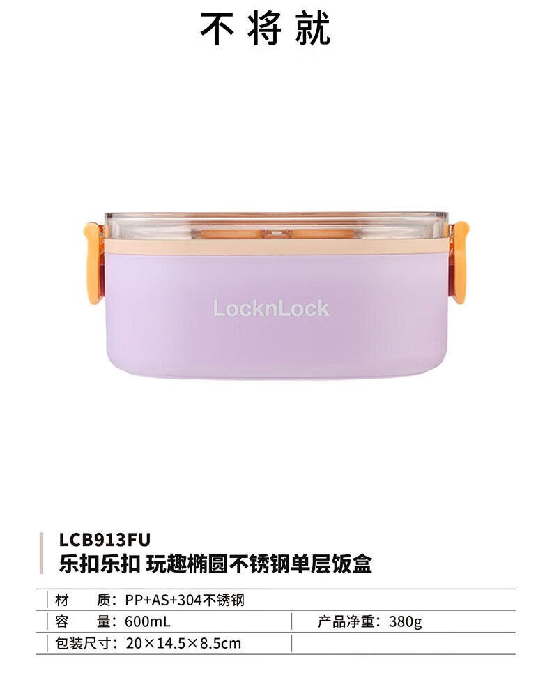 乐扣乐扣 玩趣椭圆不锈钢单层饭盒 LCB913F 紫色