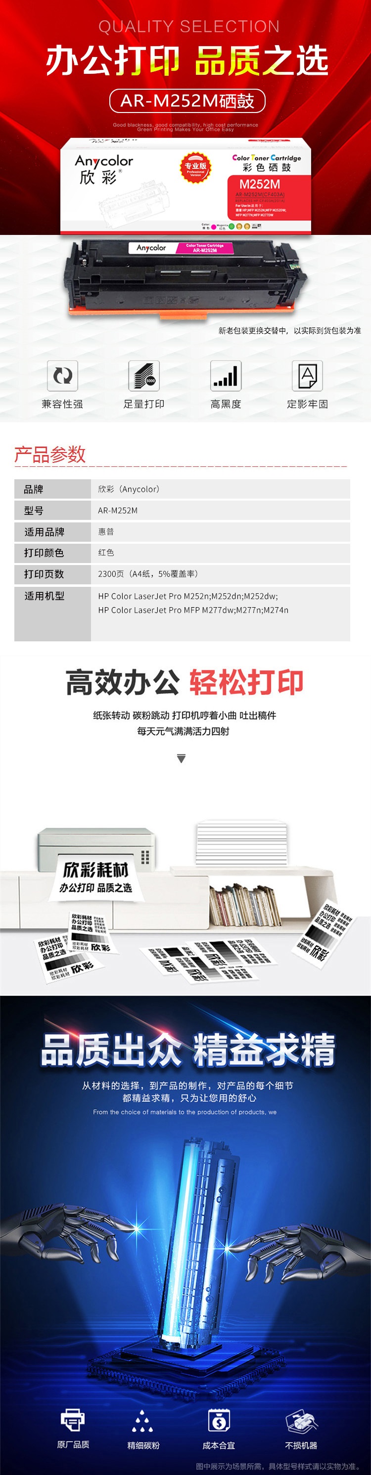 欣彩AR-M252M硒鼓红色专业版2.3K 适用惠普CF403A 201A M252n M252dn M252dw M277dw 单位:支 起订量1支 红色