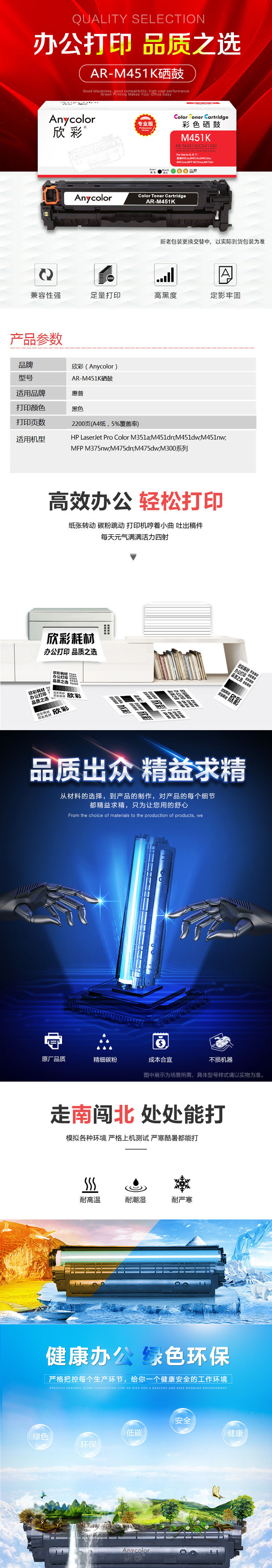 欣彩AR-M451K硒鼓黑色专业版 适用惠普CE410A 305A M351a M451dn M451dw M451nw M375nw 单位:支 起订量1支 黑色