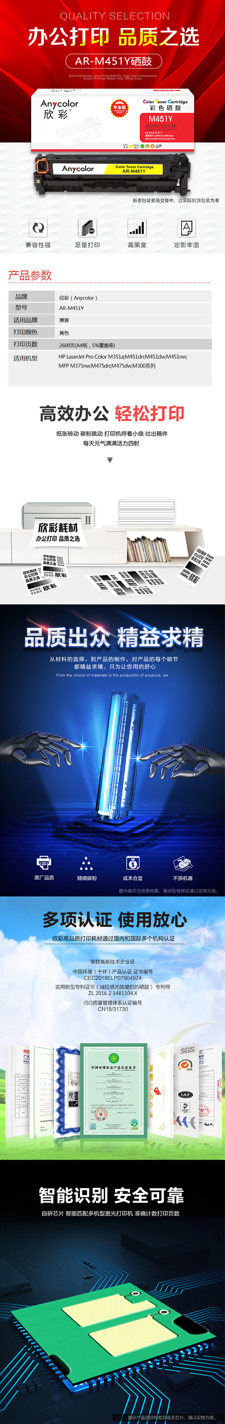 欣彩AR-M451Y硒鼓黄色专业版 适用惠普CE412A 305A M351a M451dn M451dw M451nw M375nw 单位:支 起订量1支 黄色