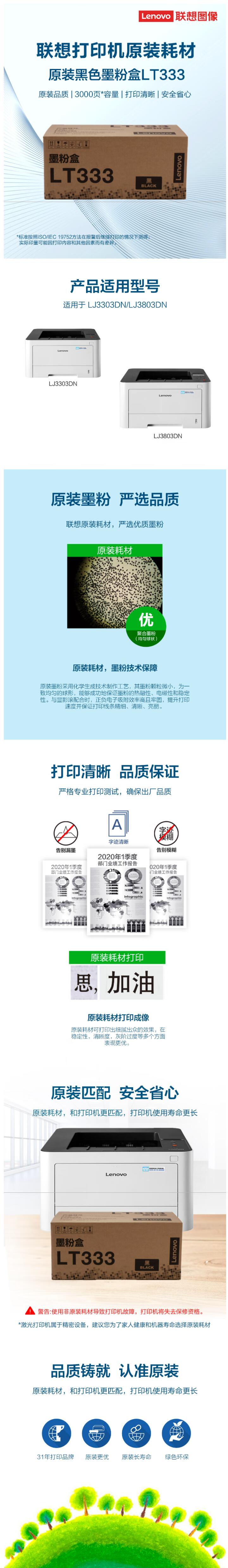 联想(Lenovo)原装黑色墨粉LT333(适用LJ3303DN LJ3803DN打印机) 黑色