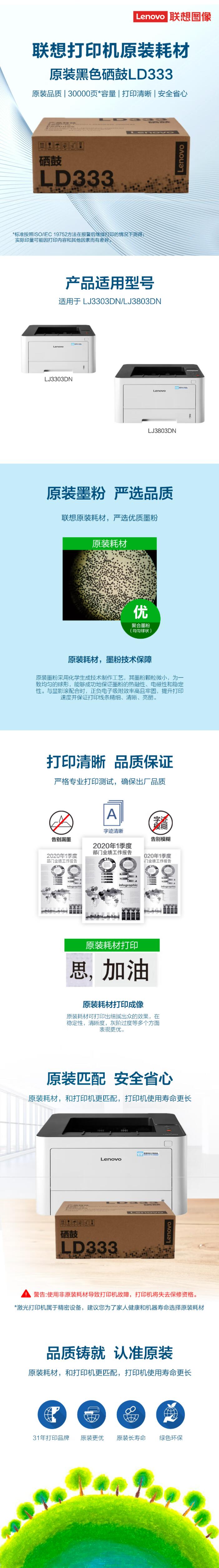 联想(Lenovo)原装黑色硒鼓LD333(适用LJ3303DN LJ3803DN打印机) 黑色