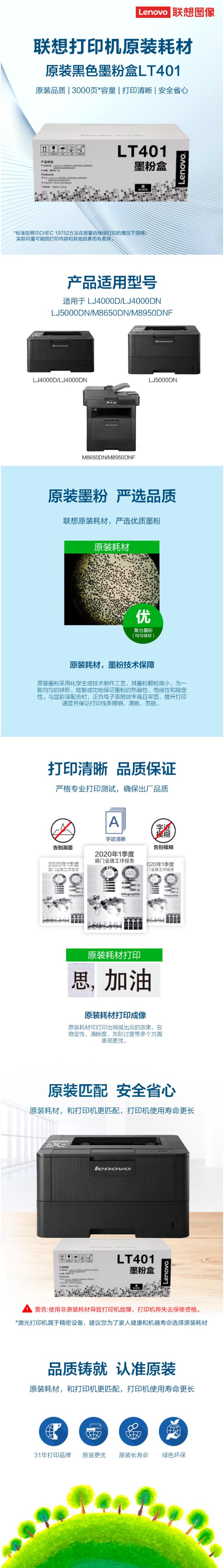 联想(Lenovo)原装黑色墨粉LT401(适用LJ4000D LJ4000DN LJ5000DN M8650DN M8950DN打印机) 黑色
