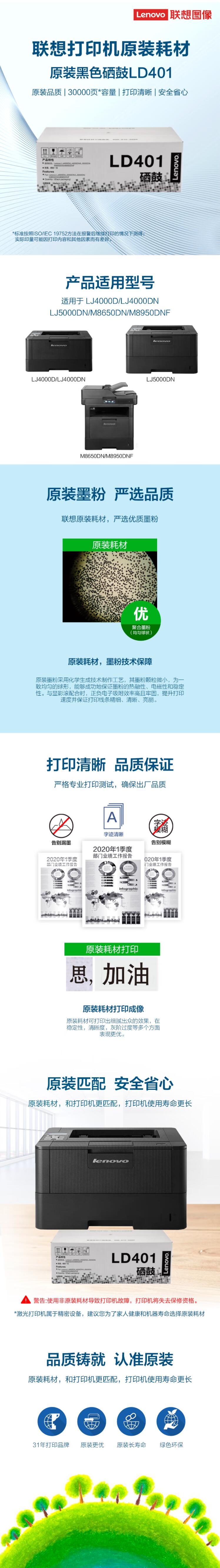联想(Lenovo)原装黑色硒鼓LD401(适用LJ4000D LJ4000DN LJ5000DN M8650DN M8950DN打印机) 黑色