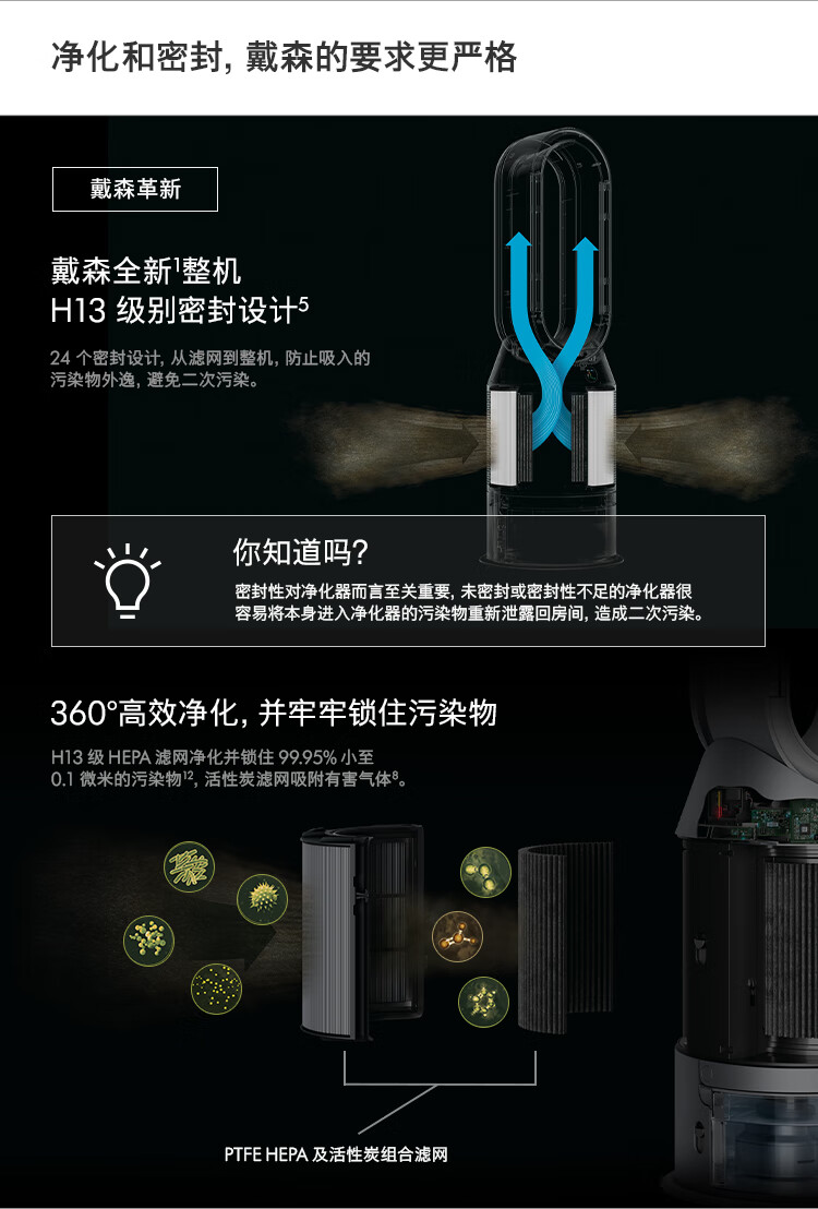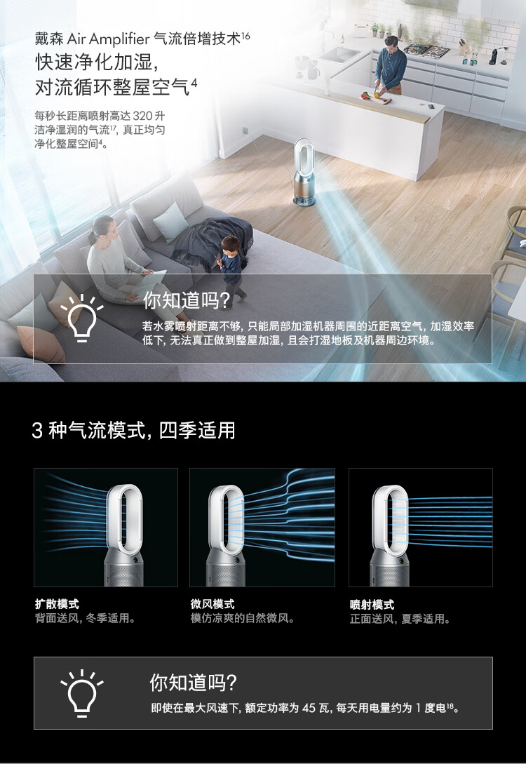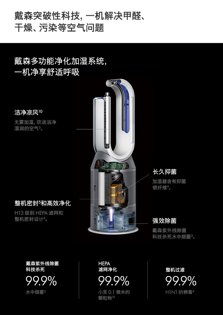 戴森(DYSON) PH03空气净化风扇 净化、无雾加湿、循环三合一家用 台 黑色