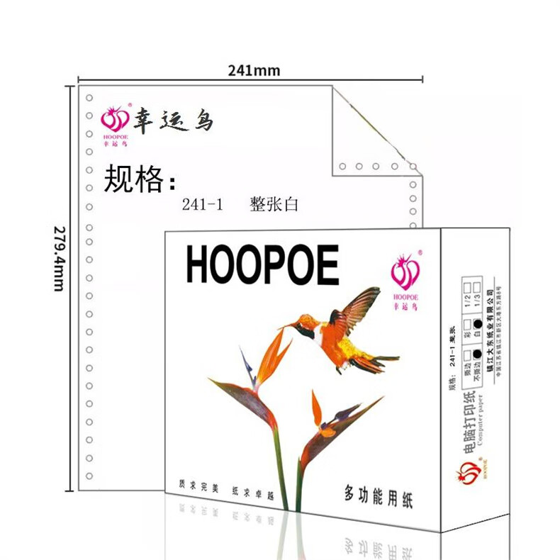 幸运鸟 白色不撕边 打印纸 241-1纯白800页/盒 60g(单位:盒) 白色