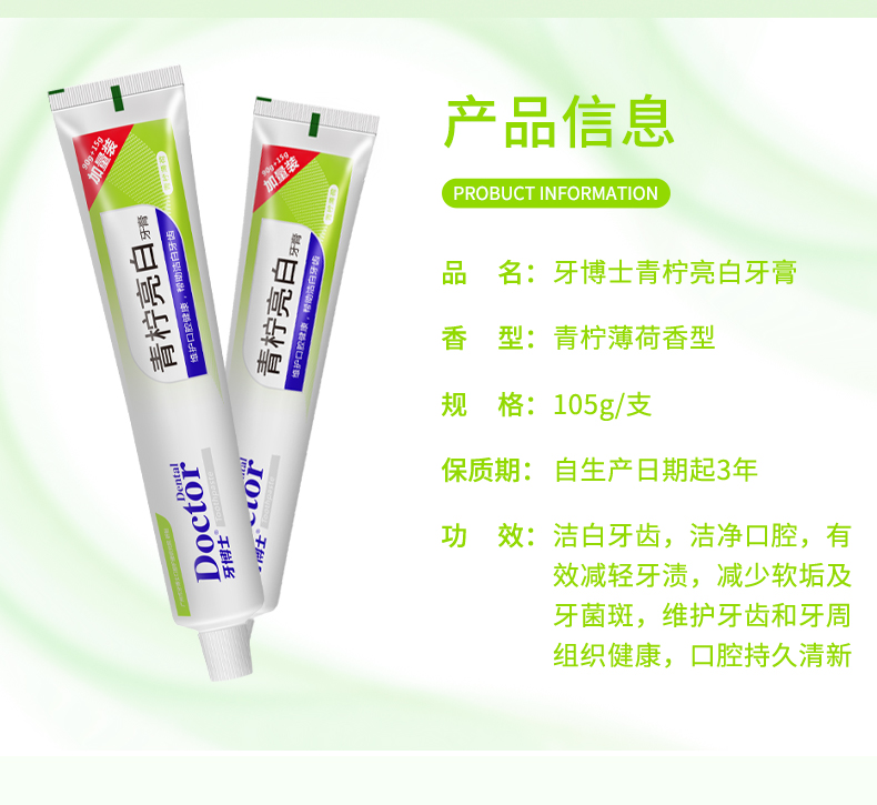 牙博士青柠亮白牙膏105g*2支(单位:支) 绿色