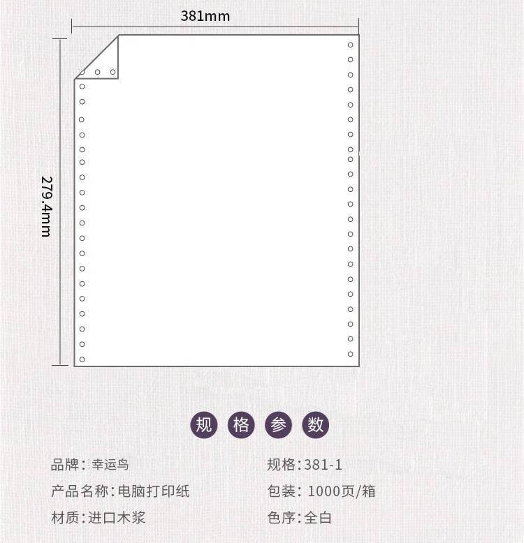 幸运鸟 针式电脑打印纸 381-1 纯白 1000页/盒(单位:盒) 白色