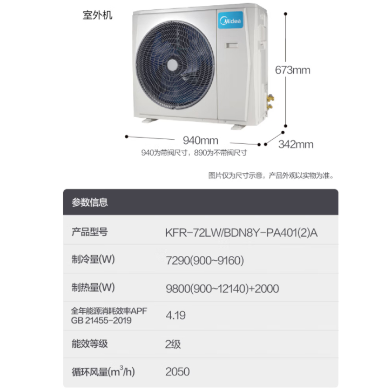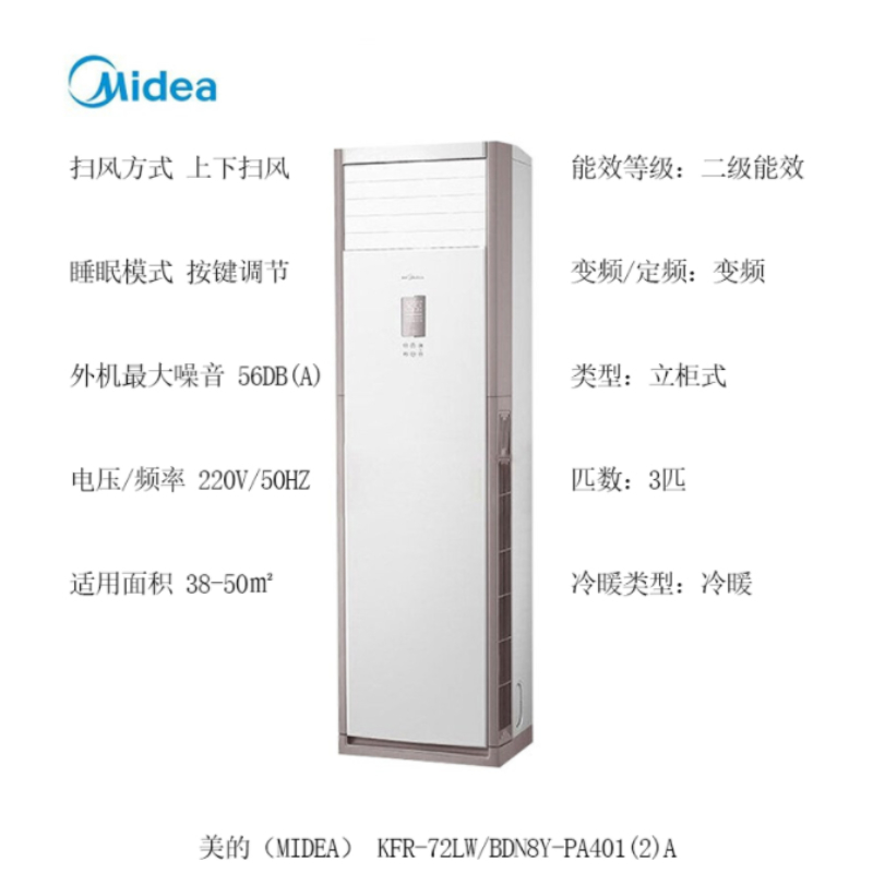 美的(Midea) KFR-72LW/BDN8Y-PA401(2)A 变频冷暖 二级能效 立柜式 标准安装(YYS)(单位:台)) 白色