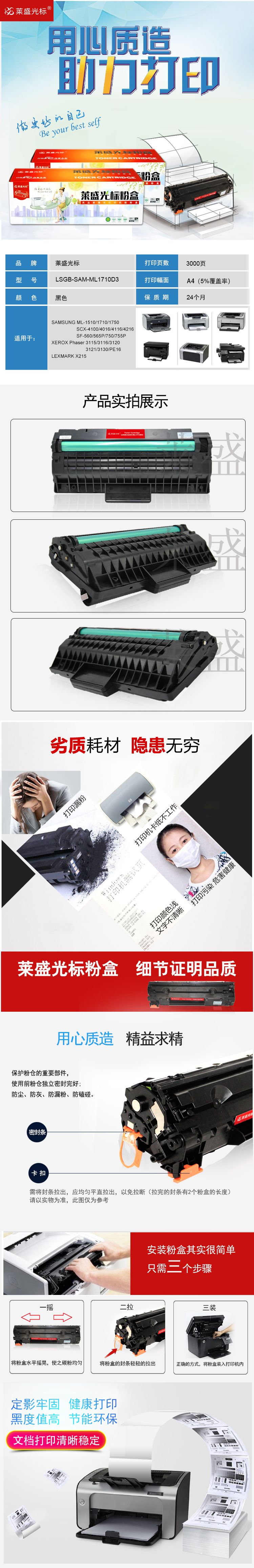 莱盛光标 LSGB-SAM-ML1710D3 打印量约3000页 粉盒 1.00 只/支 (计价单位:支) 黑色