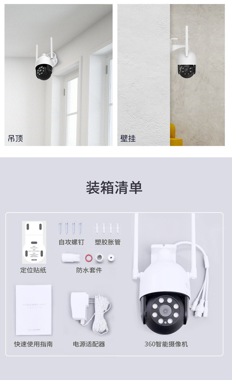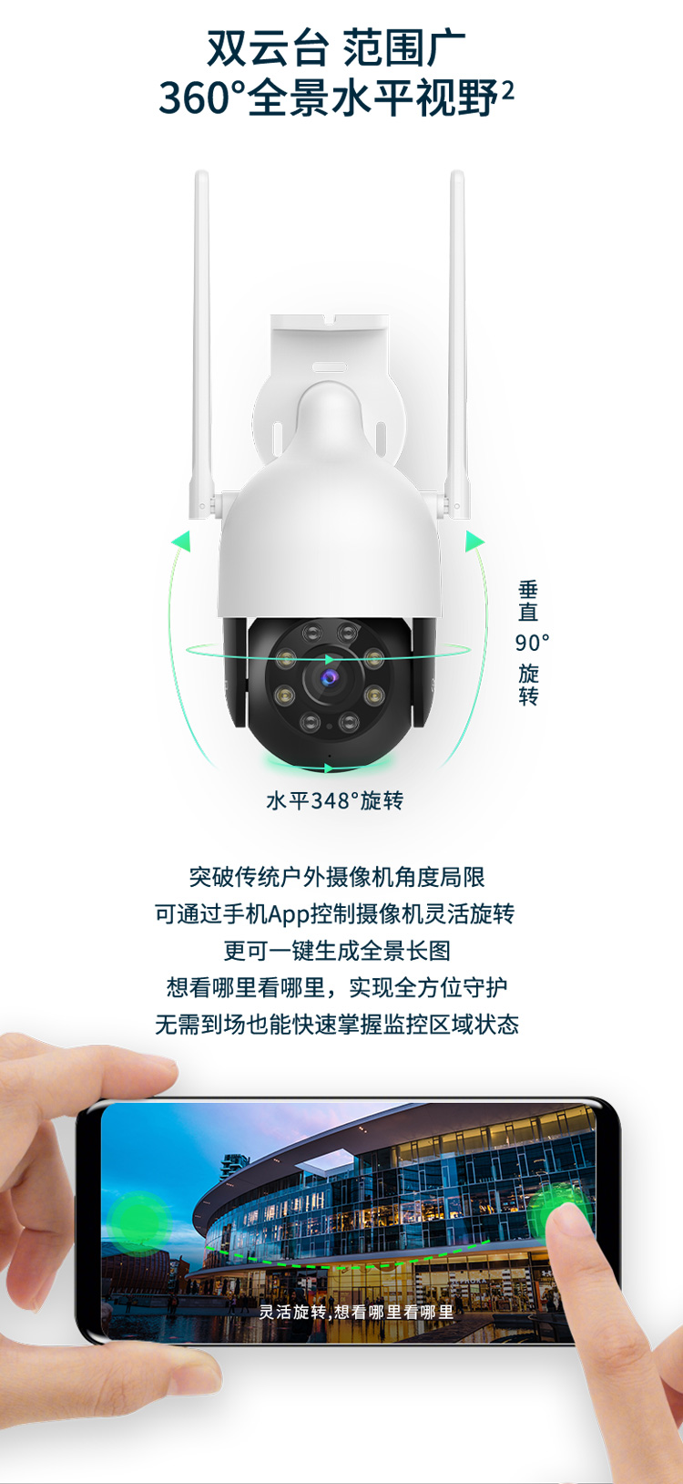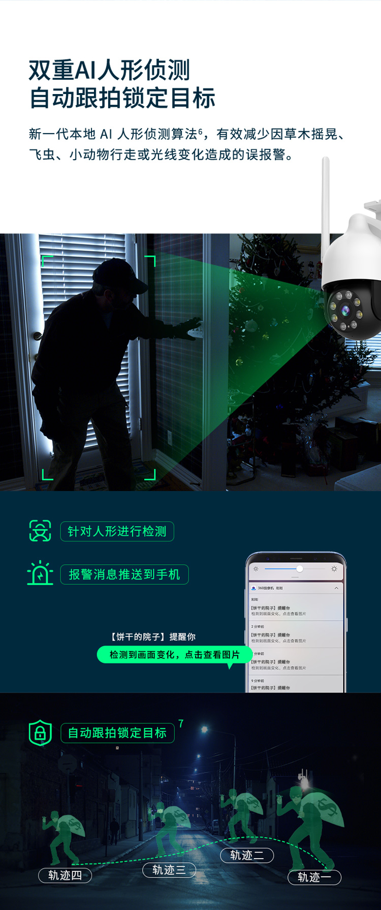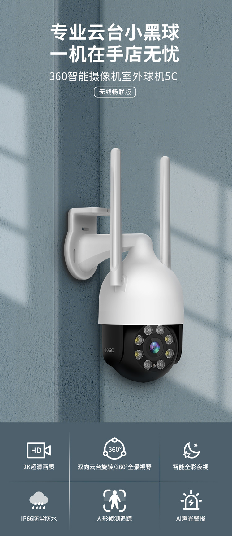 360 摄像头智能监控摄像机 300W室外户外防水监控声光报警 2K高清智能全彩夜视wifi云台球机5C无线畅联版AW4C单位:台 白-含32G存储卡