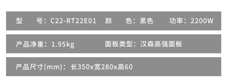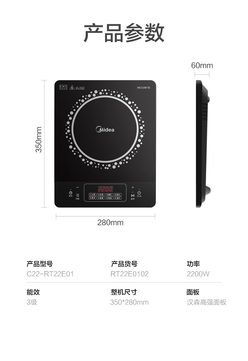 美的(Midea)电磁炉电磁灶2200W功率 C22-RT22E01 (单位:台)) 黑色