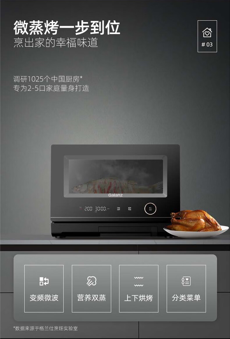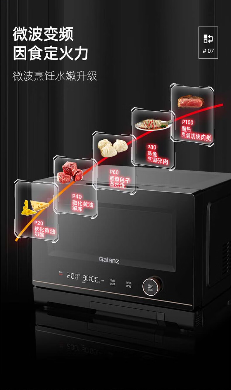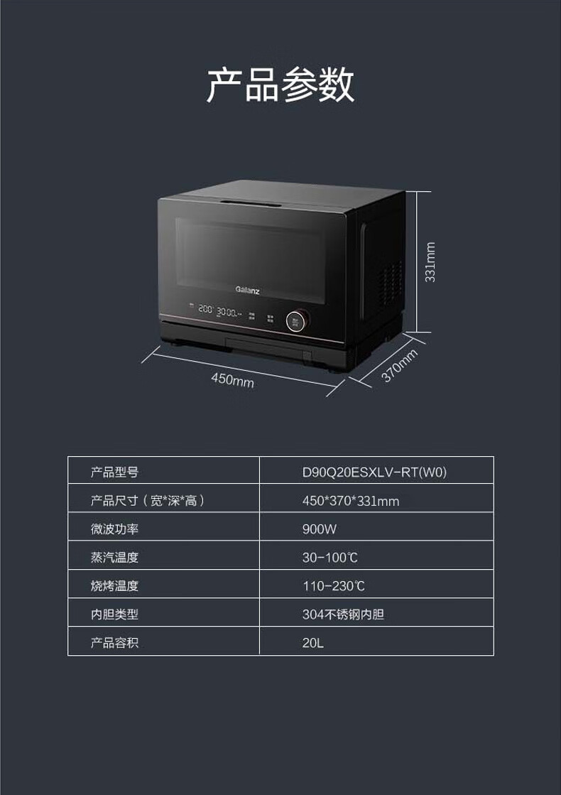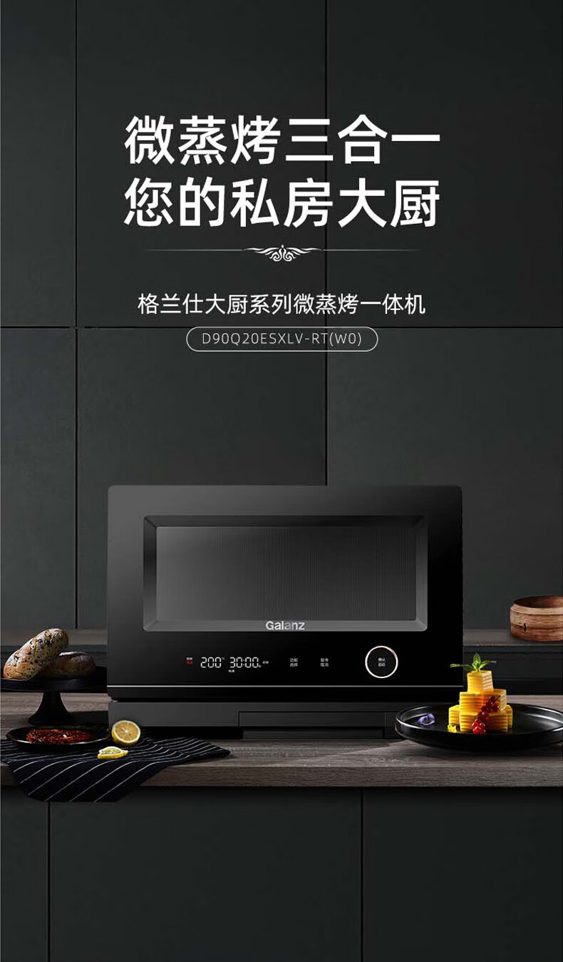 格兰仕(Galanz)微波炉家用专业微蒸烤一体机不锈钢内胆 D90Q20ESXLV-RT(W0) 黑色
