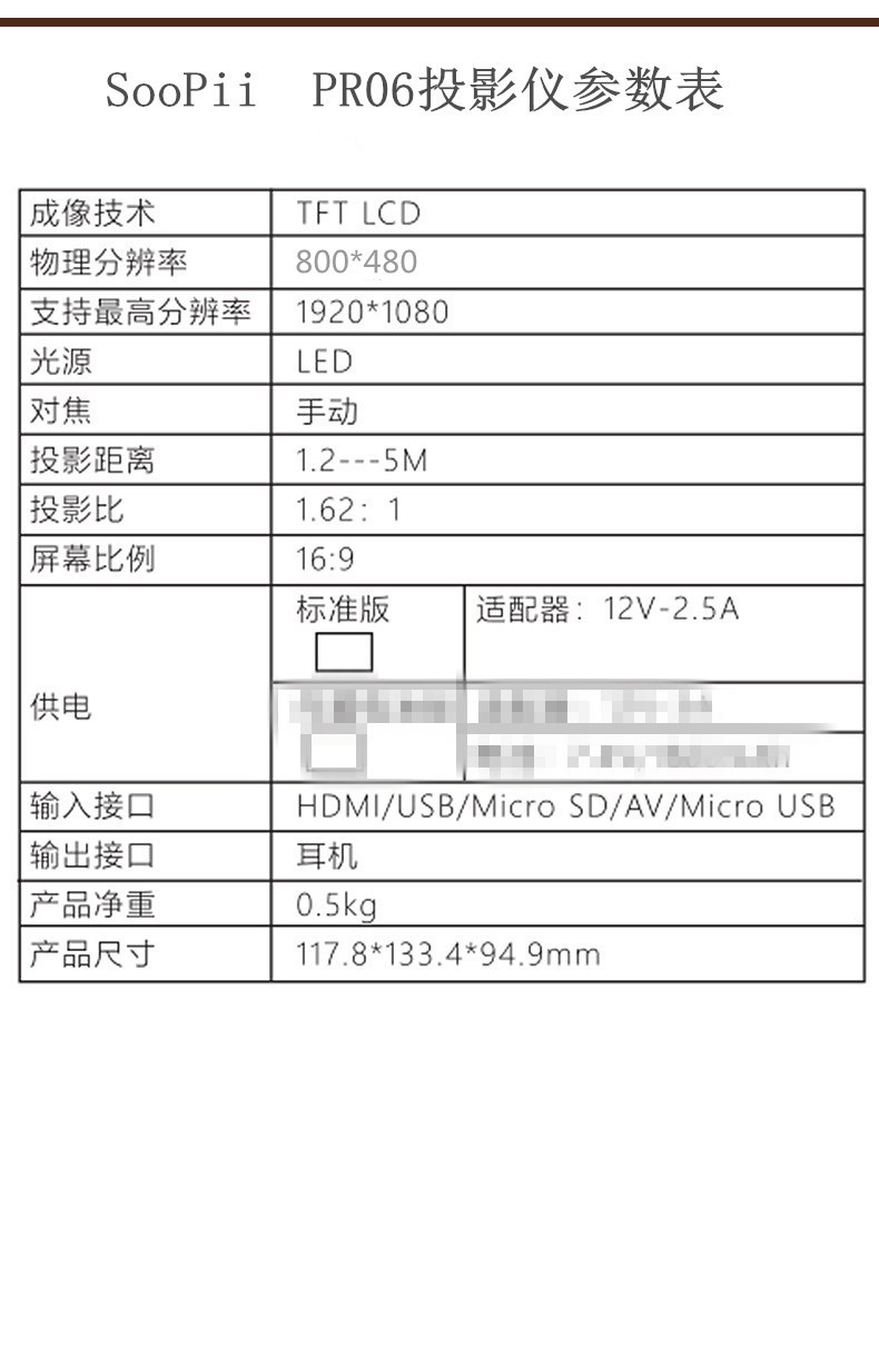 SOOPii首佩 迷你投影仪PR06 台 白色