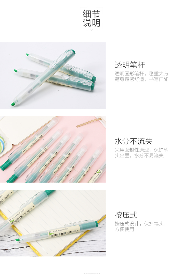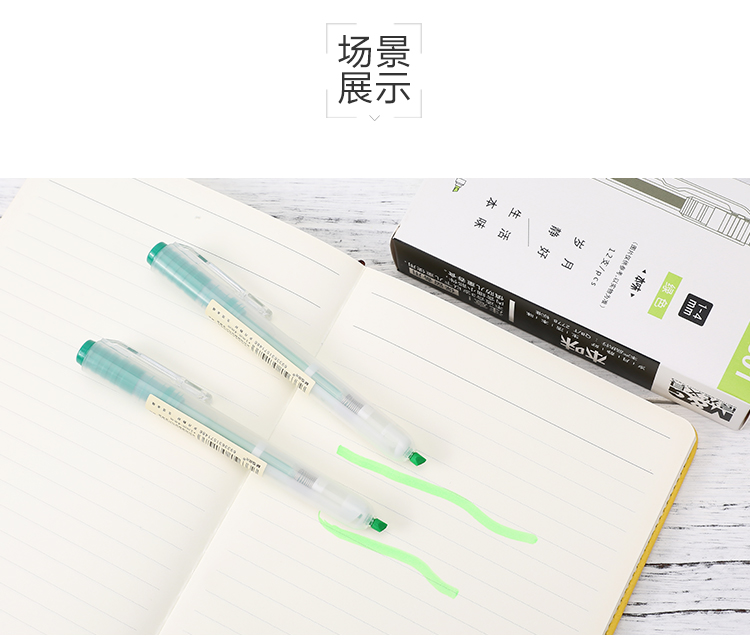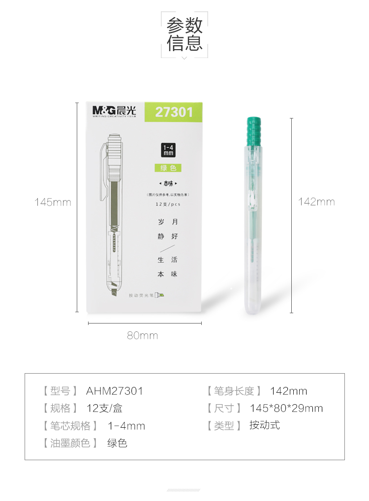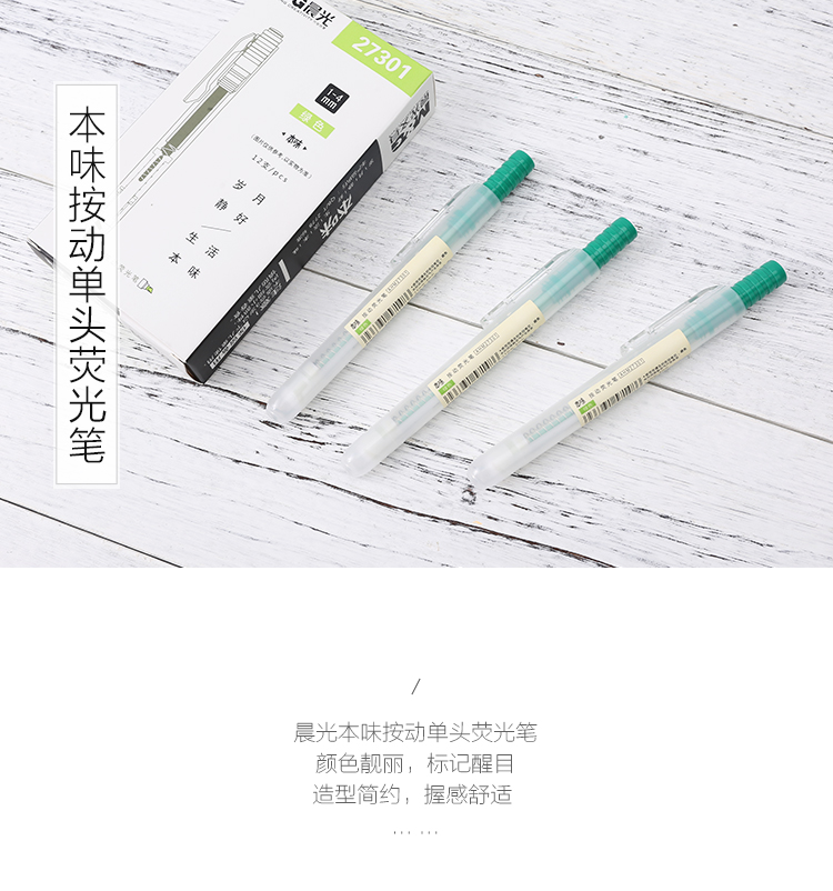 晨光(M&G) AHM27301本味系列绿色按动荧光笔 办公学习记号笔 12支 盒 绿色