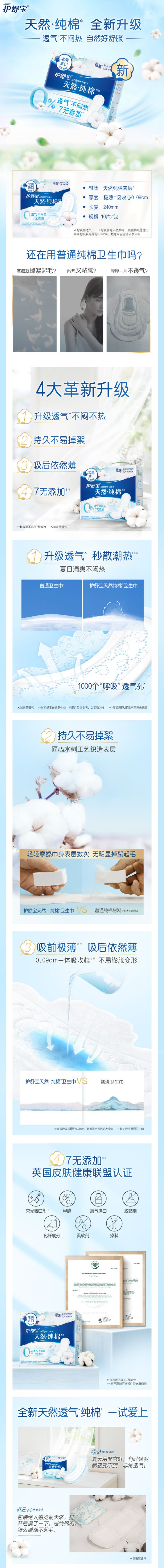 护舒宝纯棉卫生巾纯净无香型日用240mm10片*2包 混色