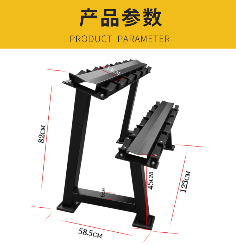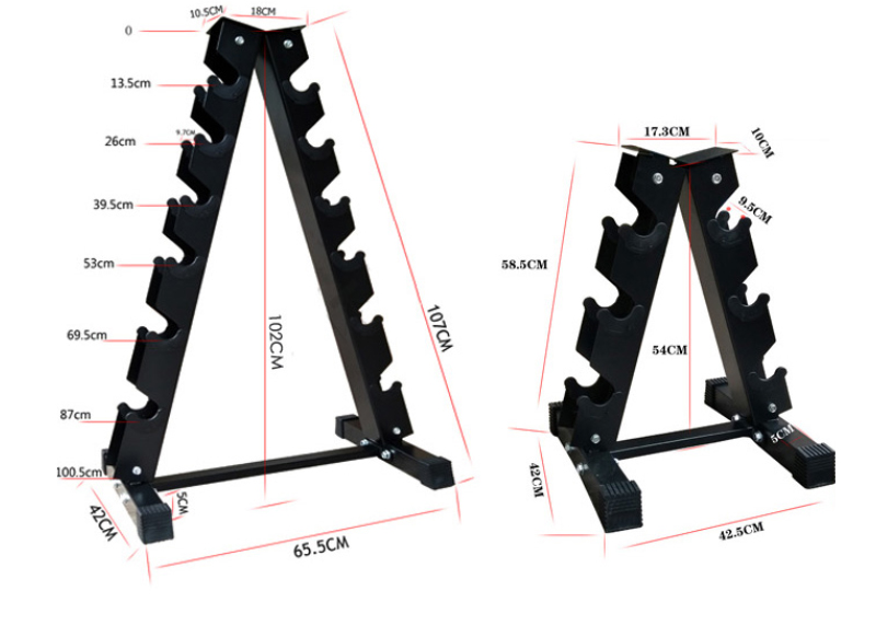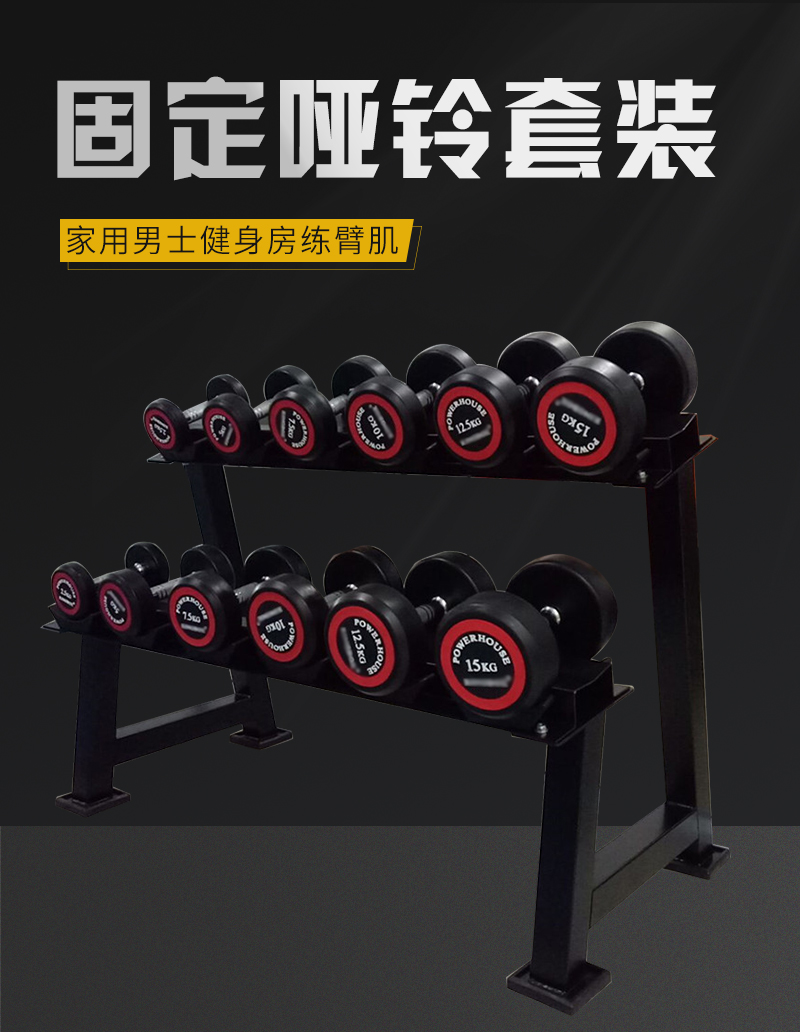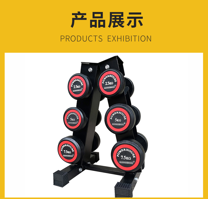 哑铃套装训练用家用健身房固定哑铃5KG10KG 练臂肌 A型架可装6对(单架子不含器材) 黑色