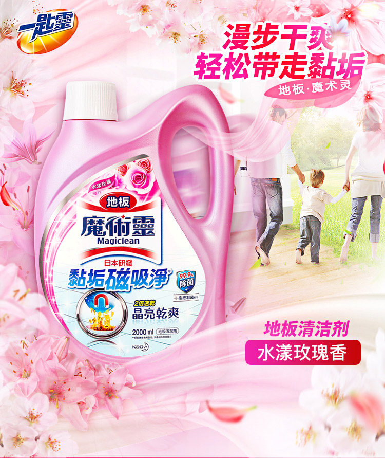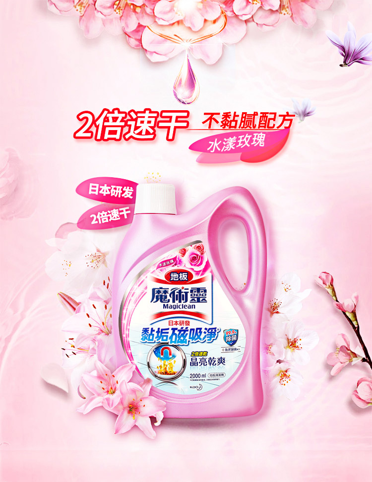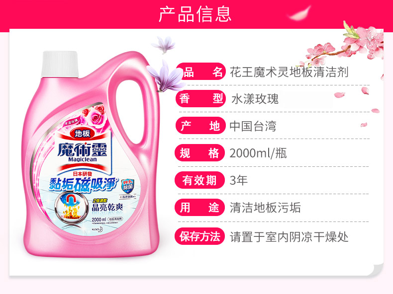 花王(KAO)魔术灵地板清洁剂玫瑰香 2000ml/瓶 粉色