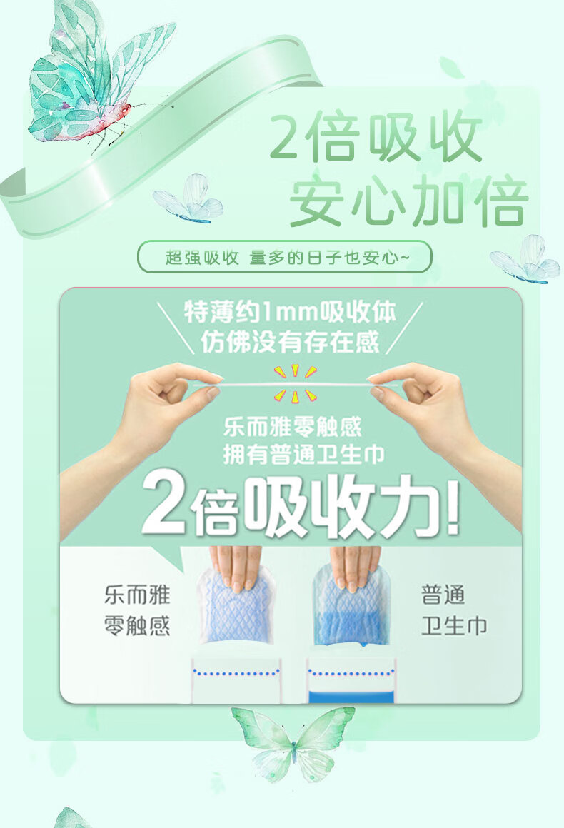 花王(KAO)乐而雅进口日用超丝薄20.5cm护翼卫生巾 28片*2包 浅杉绿