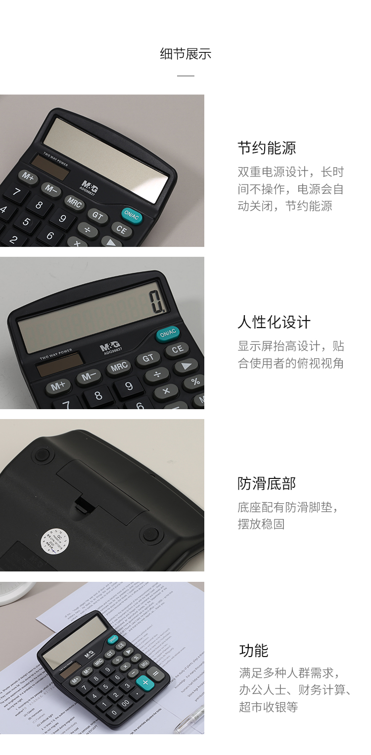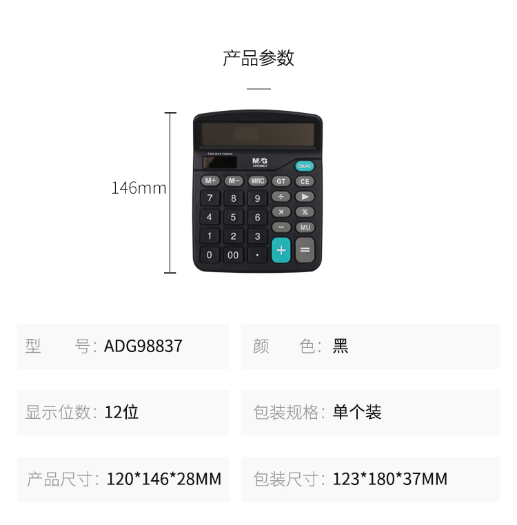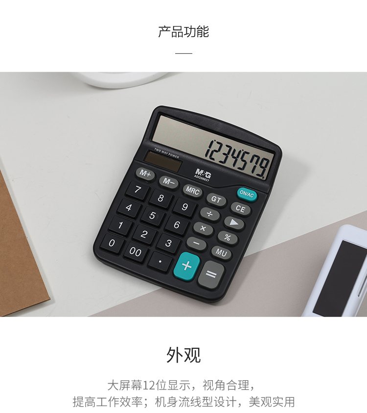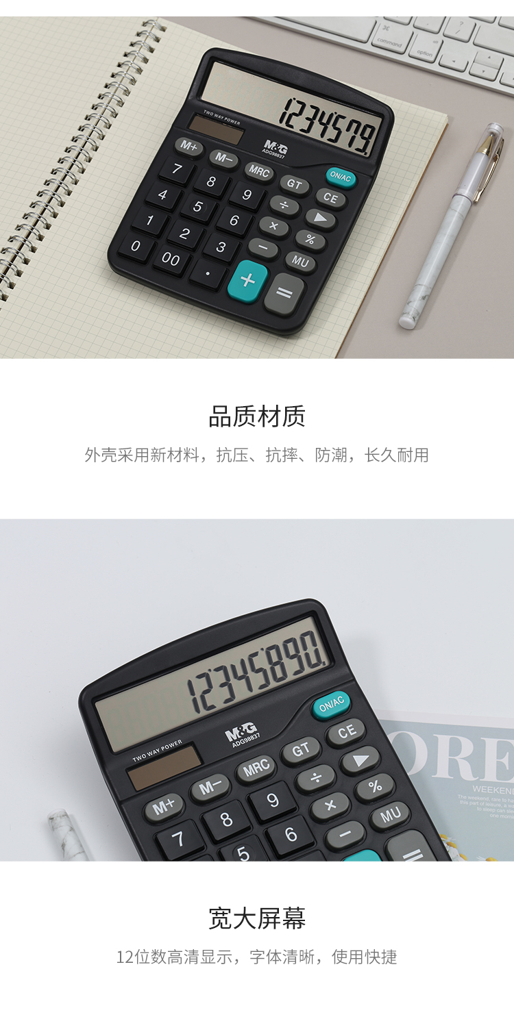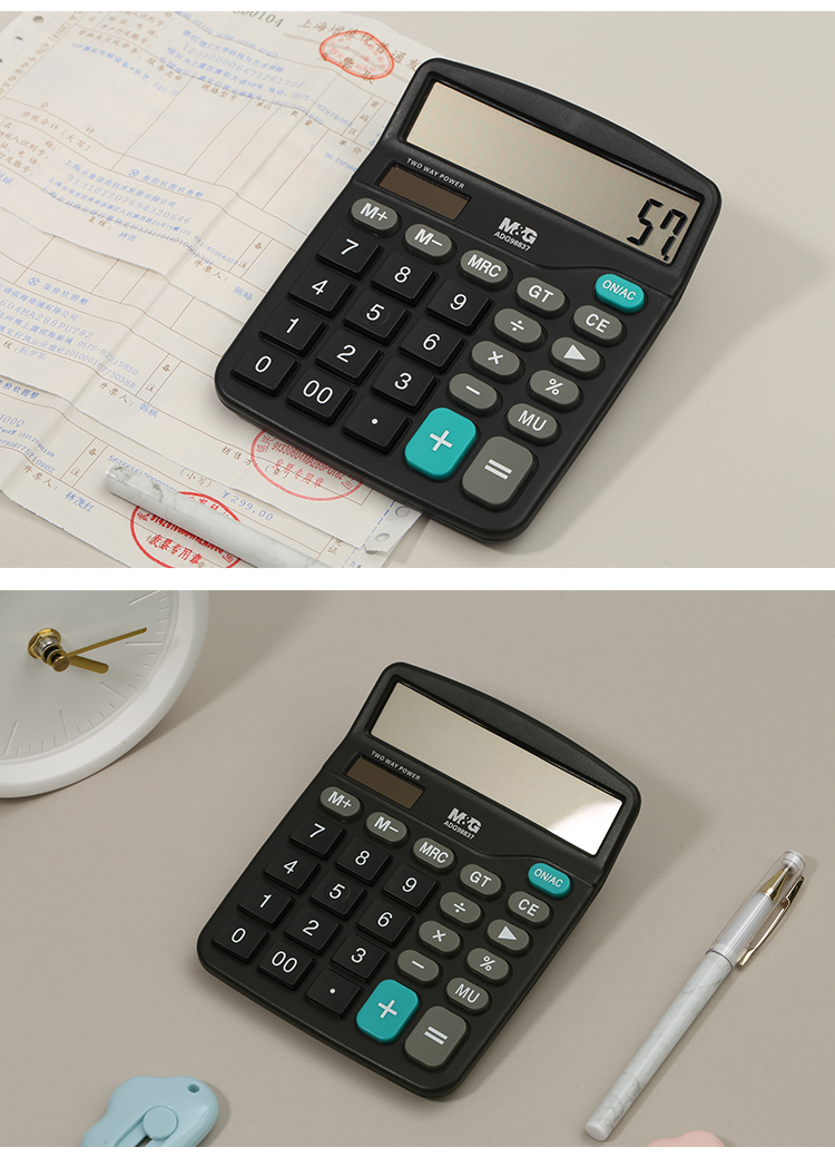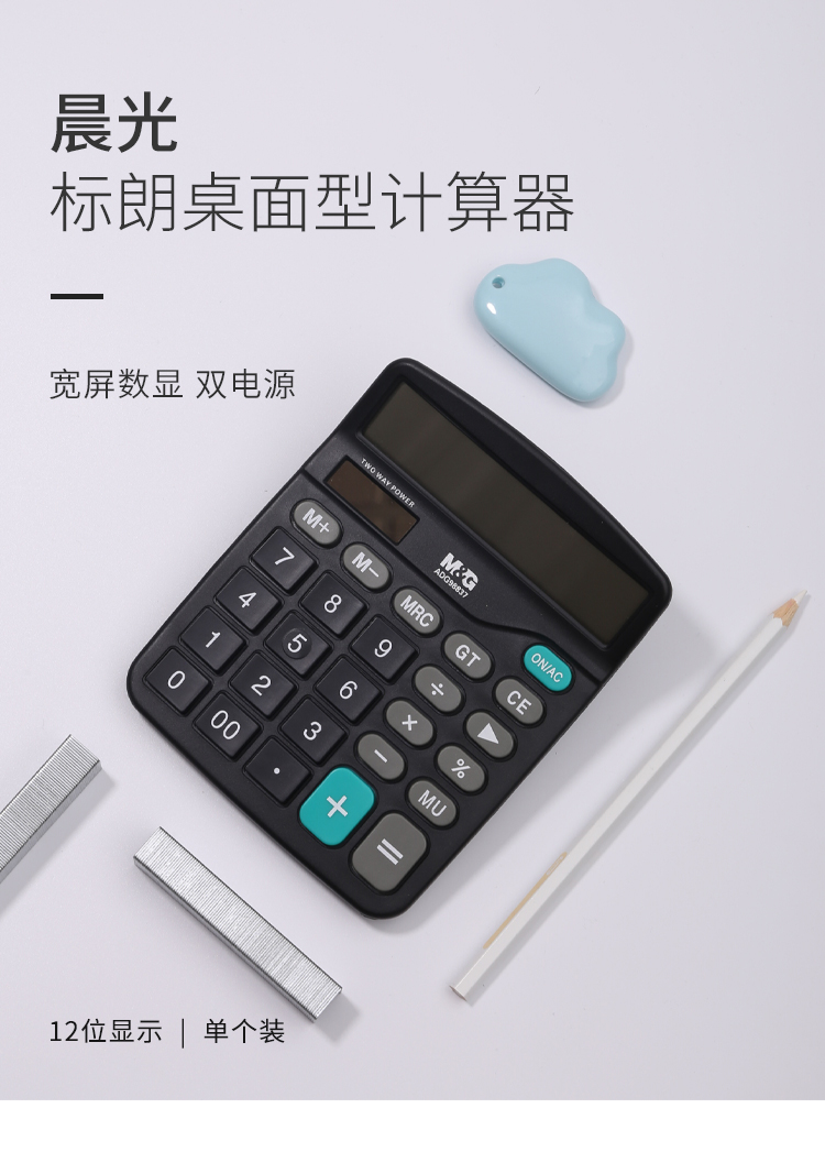 晨光(M&G)文具双电源计算器 太阳能桌面计算机12位大屏幕计算器 办公用品 单个装ADG98837 黑色