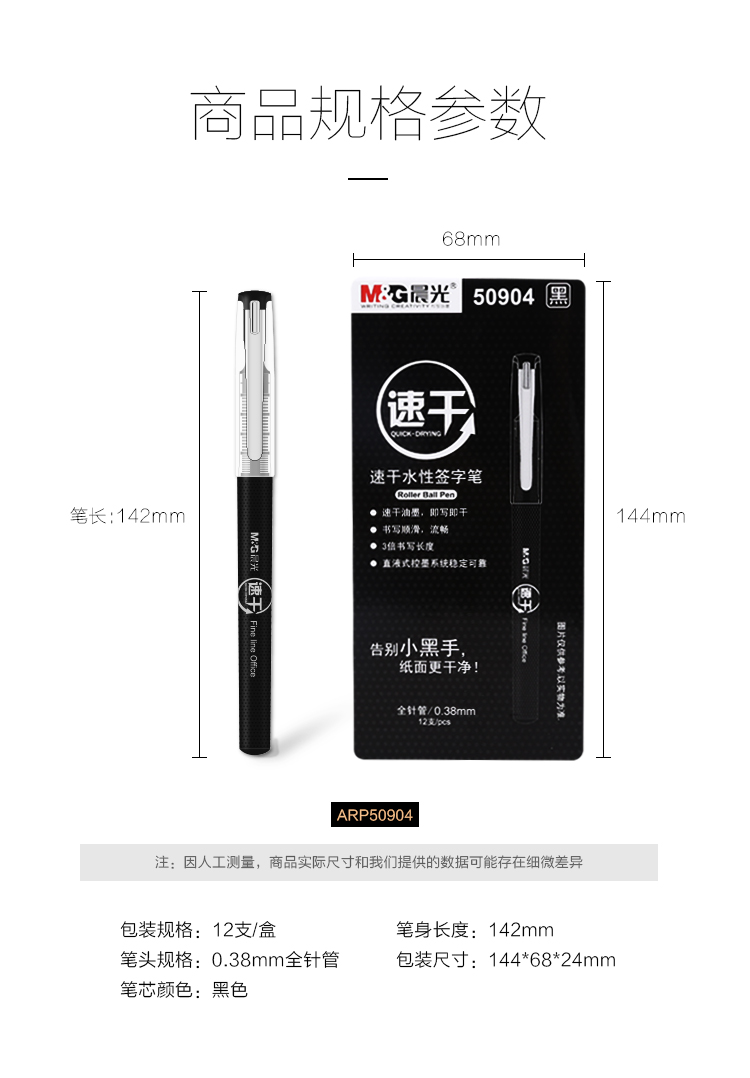 晨光(M&G)文具0.38mm黑色中性笔 速干全针管签字笔 直液式水笔 12支/盒ARP50904 黑色