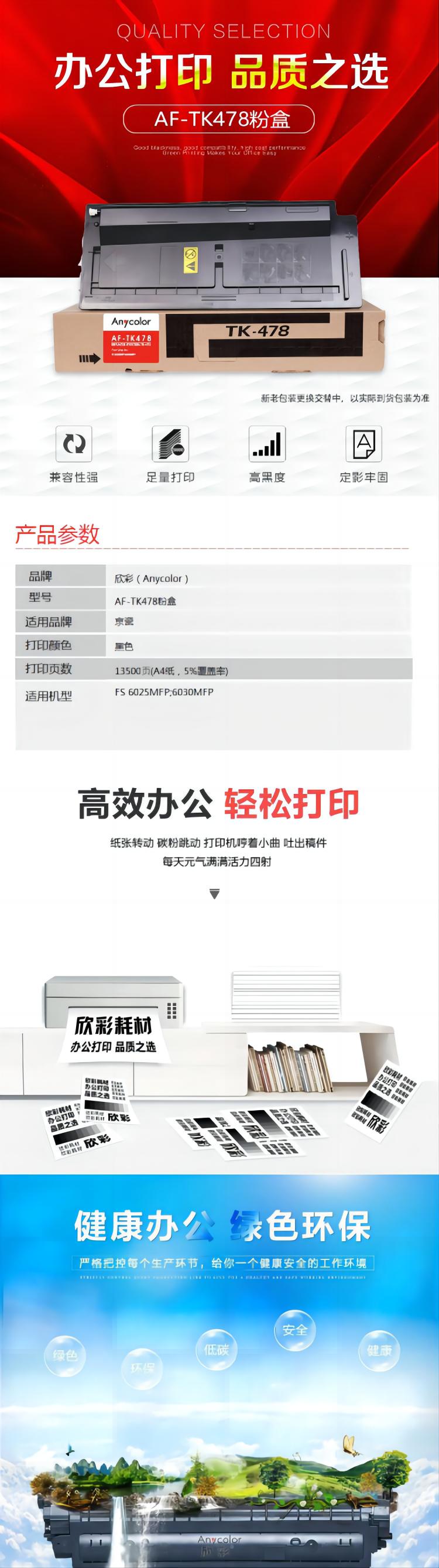 欣彩 AF-TK478粉盒 适用京瓷TK-478 FS 6025MFP 6030MFP 复印机 黑色