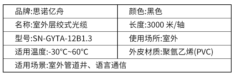 线缆 思诺亿舟/SNIT SN-GYTA-12B1.3 光缆 3000米 非屏蔽 常规pvc 12芯3000米