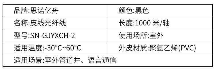 线缆 思诺亿舟/SNIT GJYXCH-2 黑色 1000米 2芯皮线光纤1000米