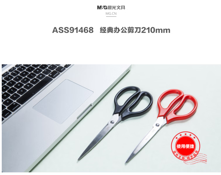 晨光(M&G)文具210mm办公家用生活剪刀 大号手工剪纸刀 办公用品 ASS91468 5把装 多个颜色混发