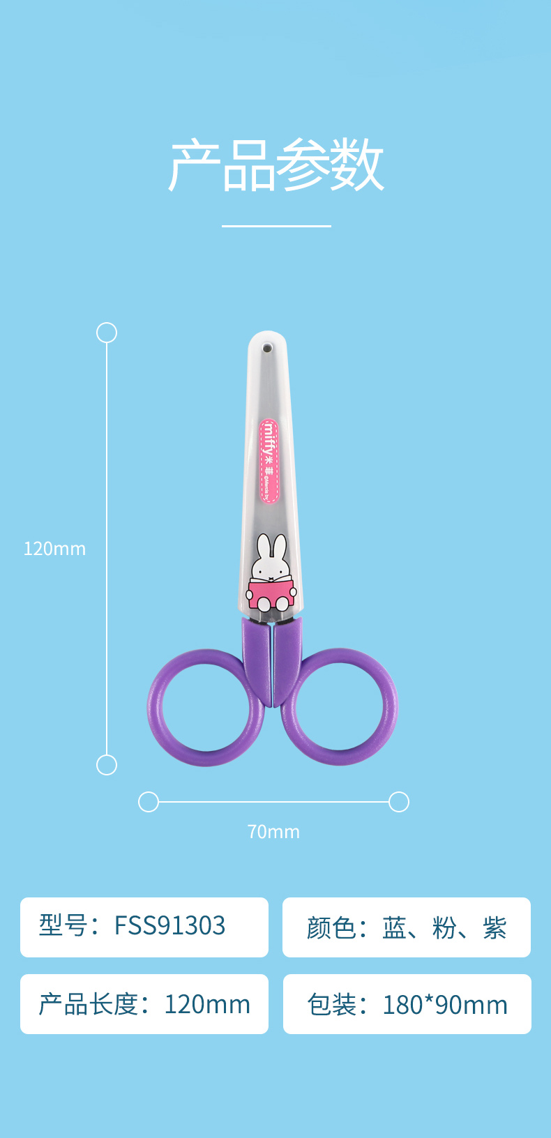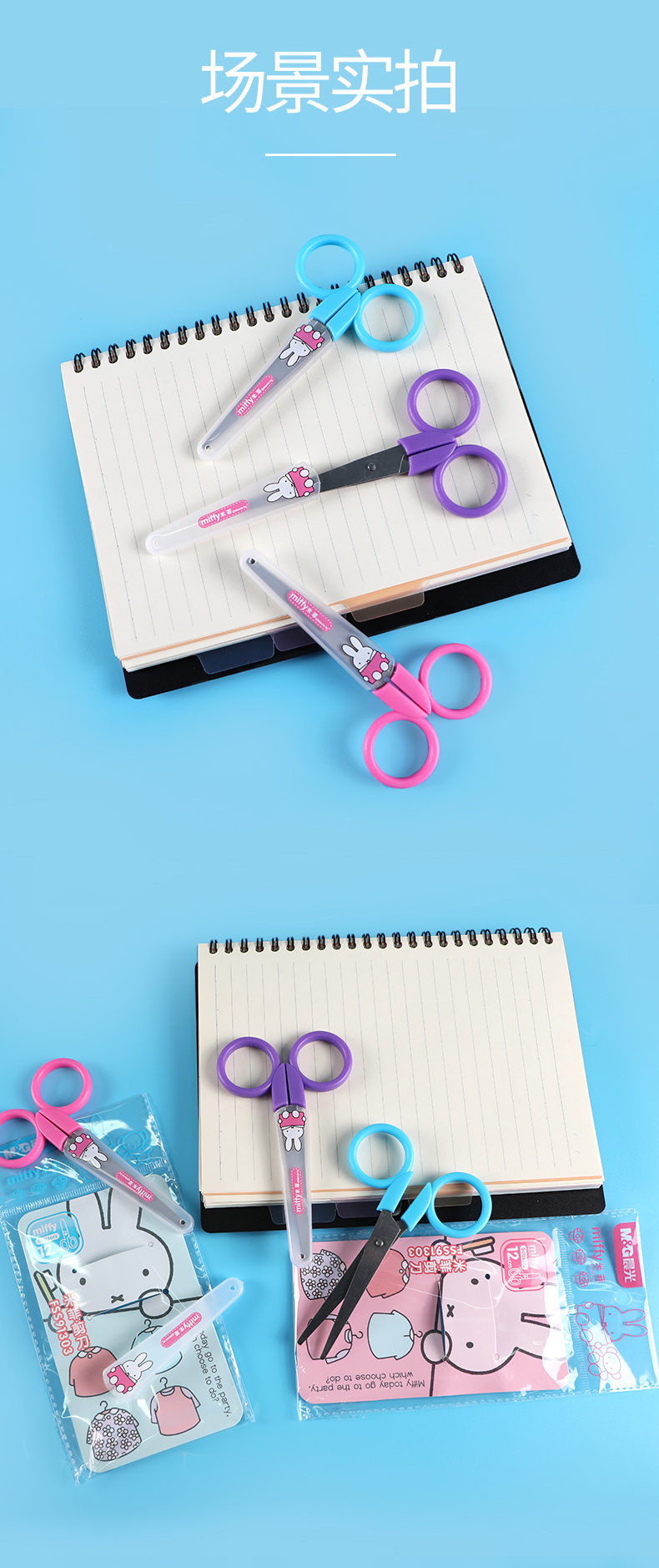 晨光(M&G)文具儿童卡通安全帽剪纸刀剪子 米菲系列可爱小剪刀 FSS91303 6把装 多个颜色混发