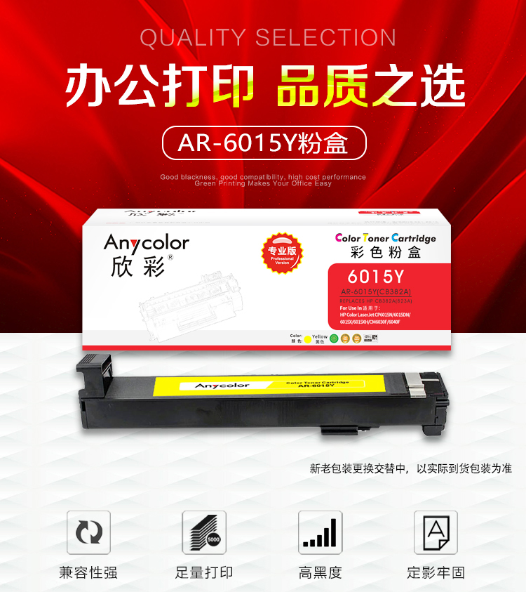 欣彩 AR-6015Y黄色墨粉盒 专业版CB382A 适用惠普HP CP6012 6015 CM6030 CM6040 823A 黄色