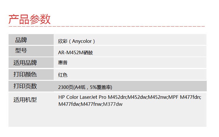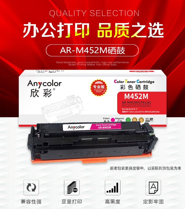 欣彩 AR-M452M硒鼓红色专业版 适用惠普CF413A 410A M377dw M452dn M452dw M452nw 单位:支 起订量1支 红色