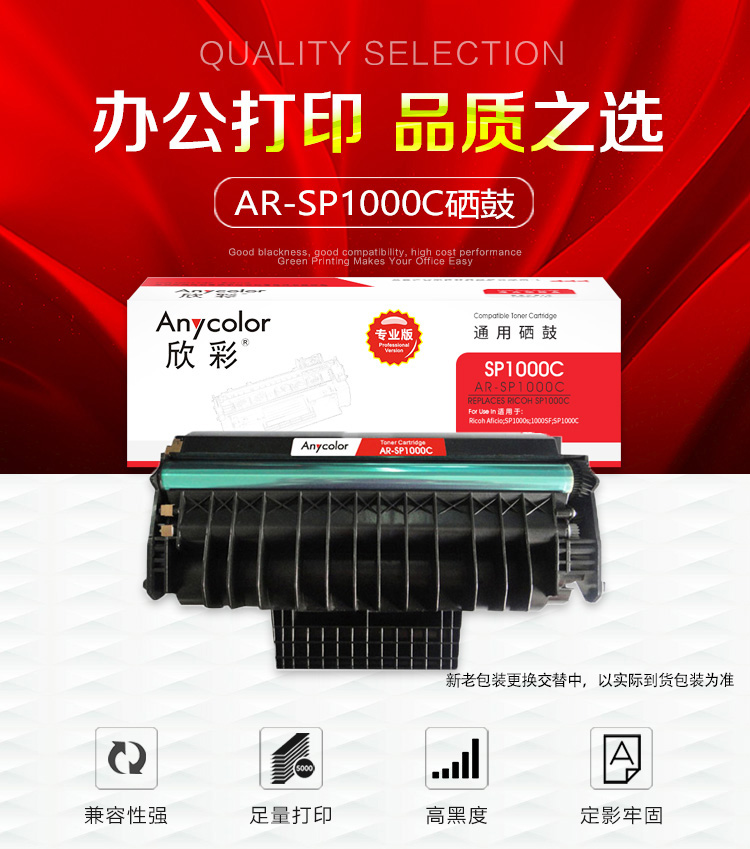 欣彩 AR-SP1000C硒鼓专业版 适用理光RICOH Aficio SP1000s 1000SF SP1000C 打印机 黑色