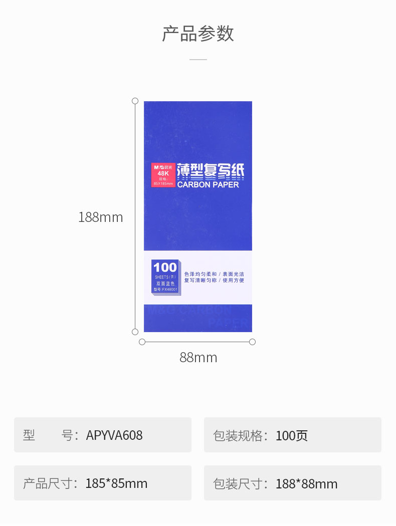 晨光(M&G)蓝色财务复写纸复印纸双面蓝色复写纸 48K(85*185mm) APYVA608 100张/包 5包装 蓝色