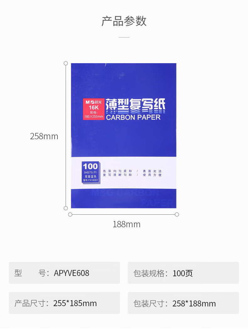 晨光(M&G)APYVE608 16K复写纸 经济耐用薄型双面印蓝纸/踏蓝纸/印色纸 5本/包 1包装 蓝色