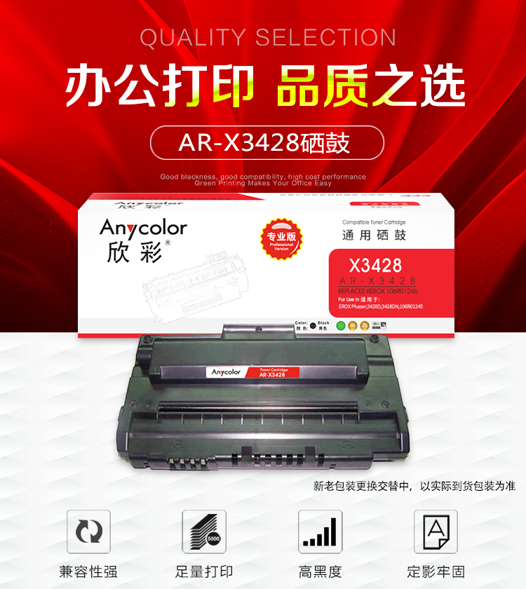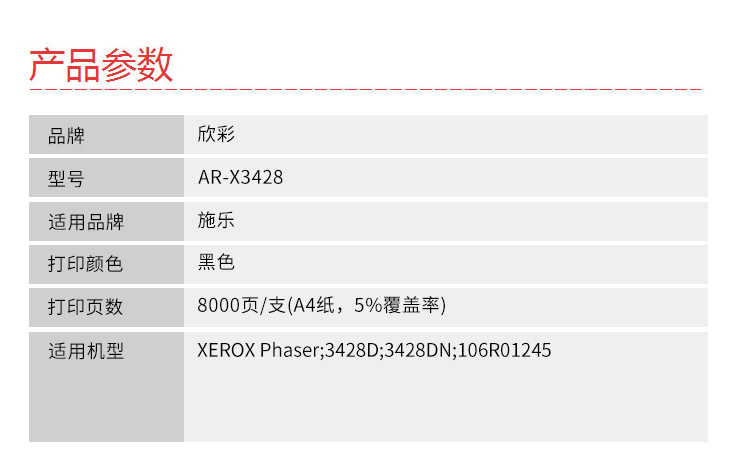 欣彩 AR-X3428硒鼓专业版 8K 适用施乐XEROX Phaser 3428D 3428DN 106R01245 打印机 黑色