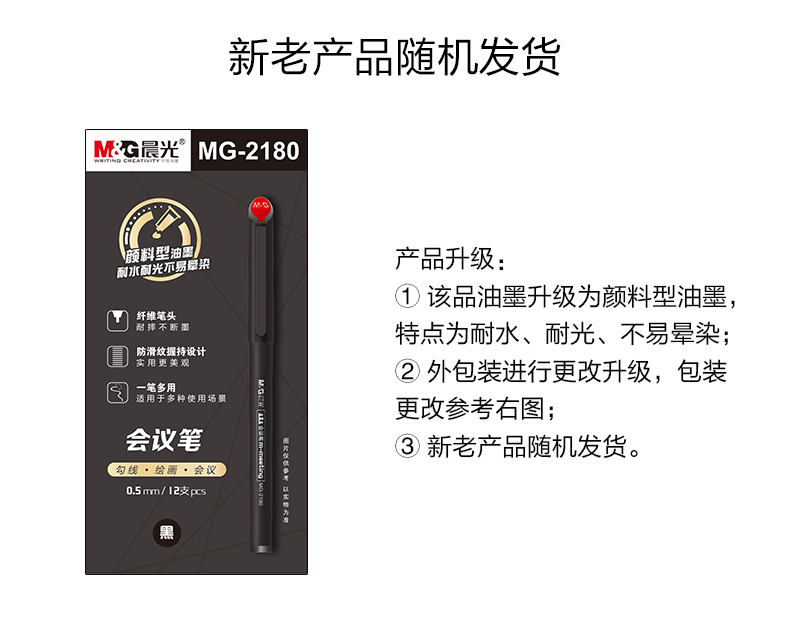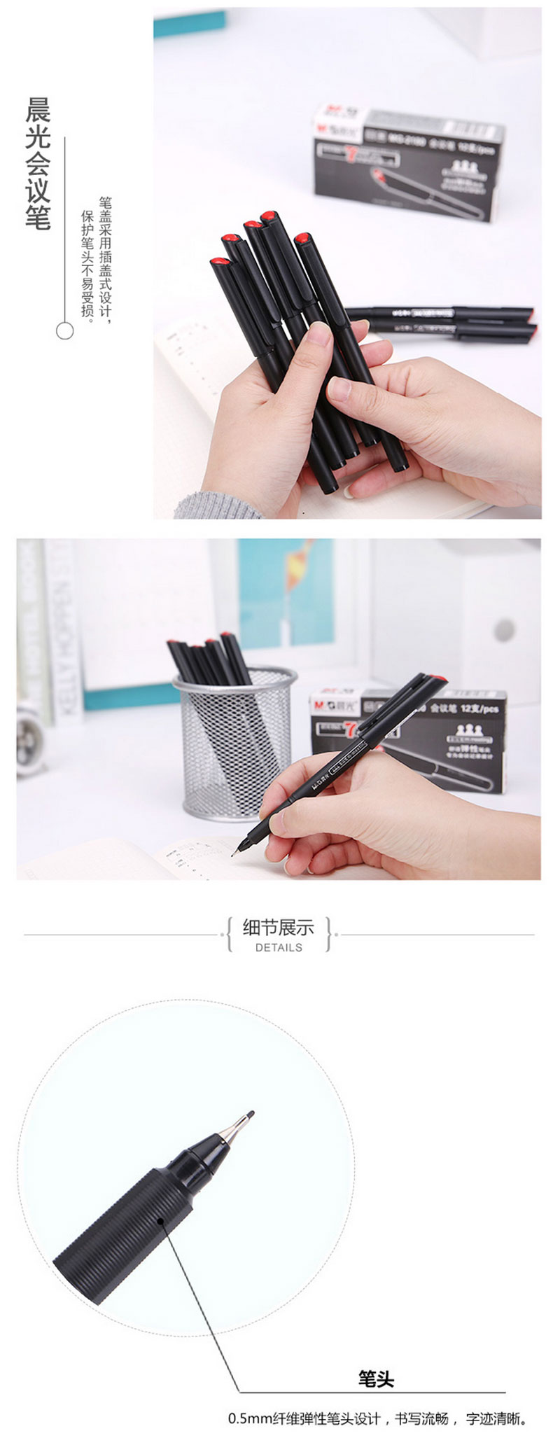 晨光(M&G)文具0.5mm黑色中性笔 碳素纤维头签字笔 会议笔水笔 144支装 MG2180 黑色