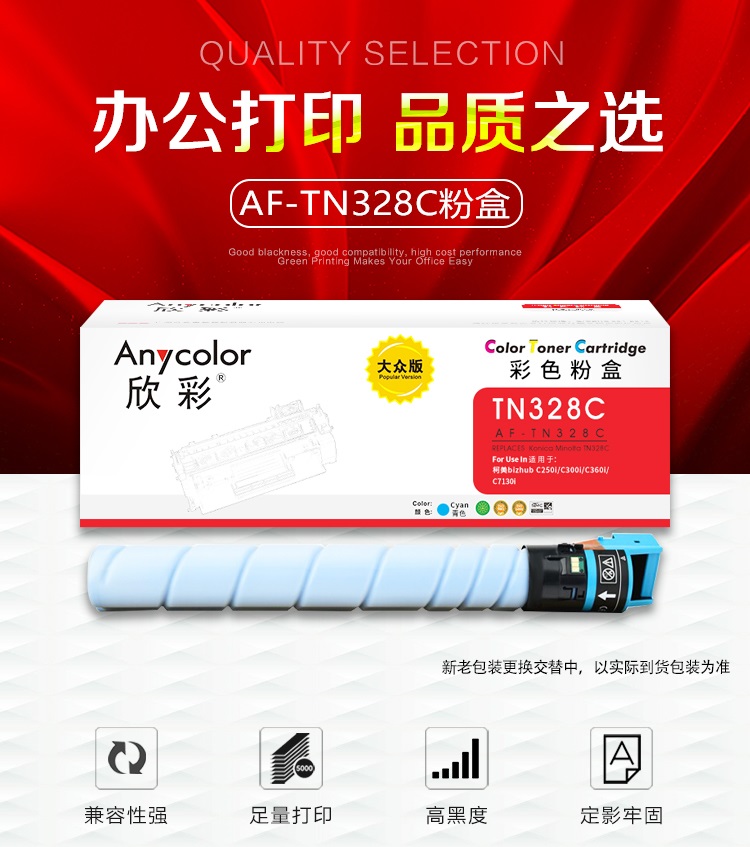 欣彩 AF-TN328C粉盒蓝色大众版 适用柯尼卡美能达TN-328 bizhub C250i C300i C360i C7130i机型 1支 蓝色