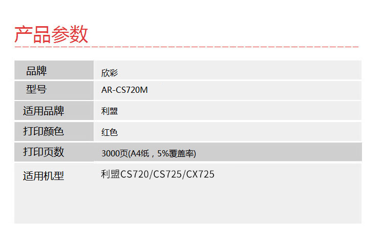 欣彩 AR-CS720M红色粉盒 专业版3K 适用利盟LEXMARK CS720 CS725 CX725 74C30M0 1支 红色