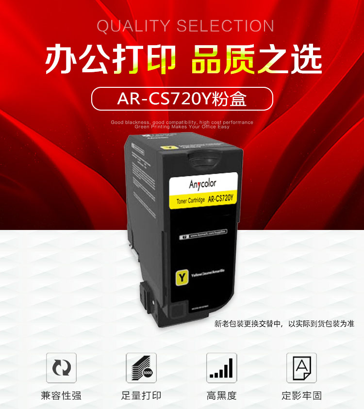 欣彩 AR-CS720Y黄色粉盒 专业版3K 适用利盟LEXMARK CS720 CS725 CX725 74C30Y0 1支 黄色