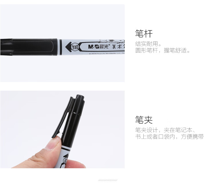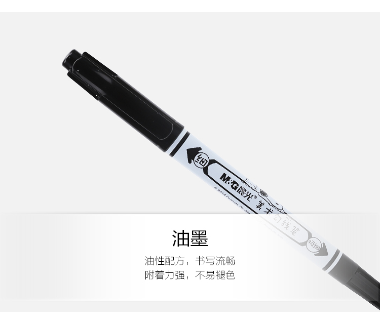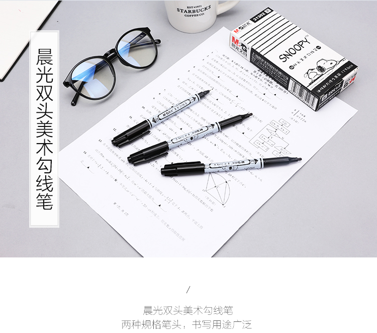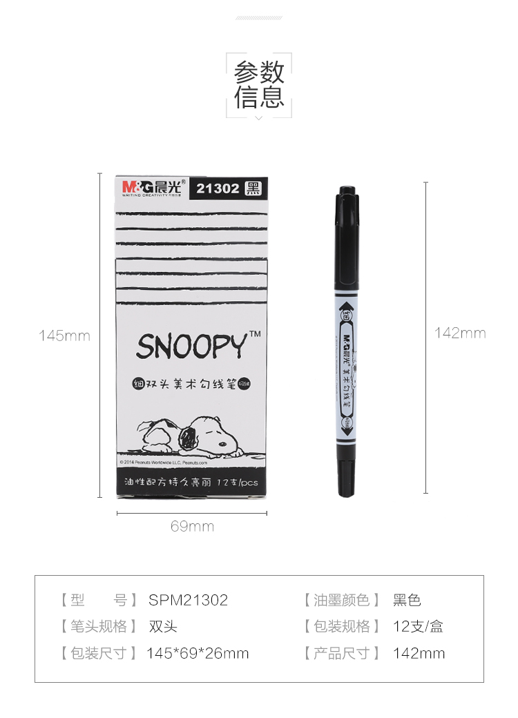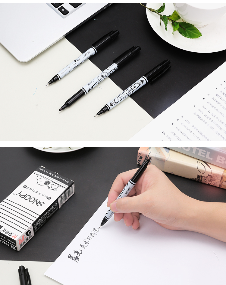 晨光(M&G)文具中小学生办公双头记号笔史努比海洋风勾线笔 12支/盒 2盒装 SPM21302A 黑色