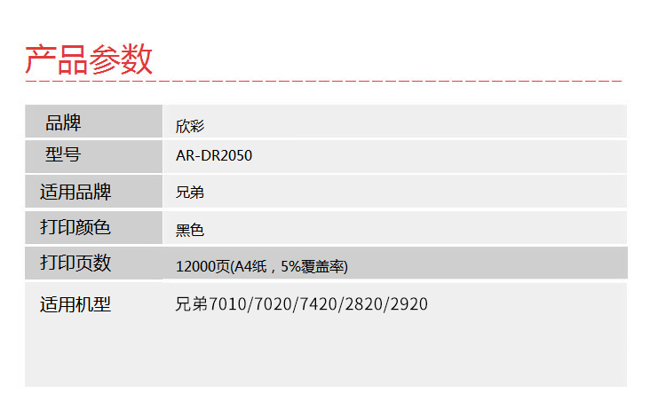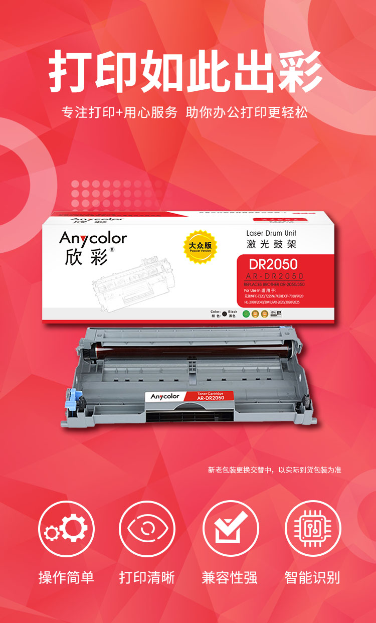 欣彩(Anycolor) AR-DR2050 大众版 12000页 适用兄弟7010 鼓架 1.00 只/支 (计价单位:支) 黑色 黑色