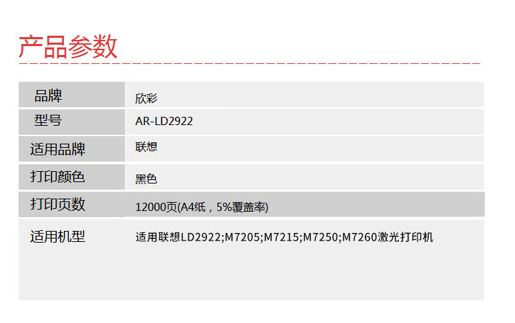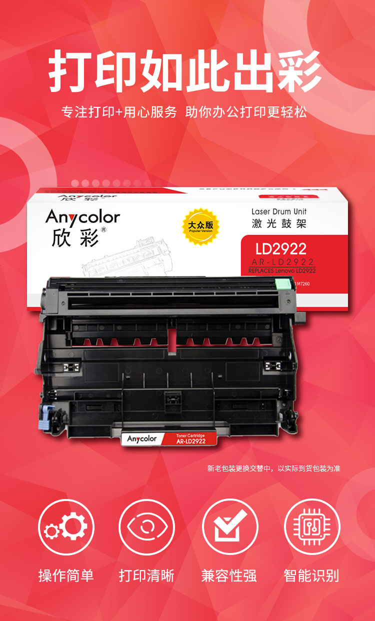 欣彩(Anycolor) AR-LD2922 大众版 12000页 适用联想M7205 鼓架 1.00 只/支 (计价单位:支) 黑色 黑色