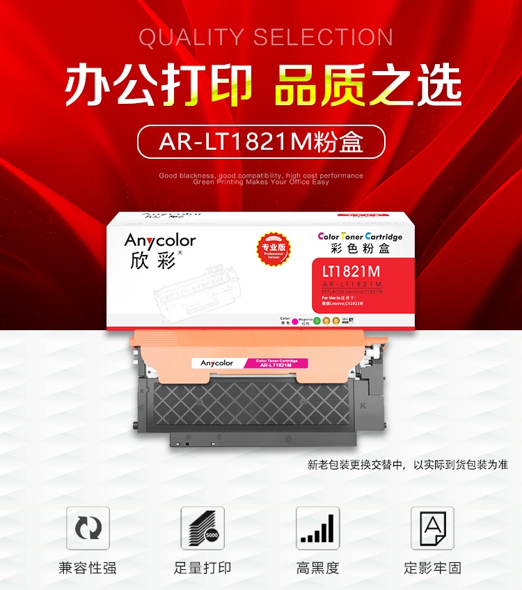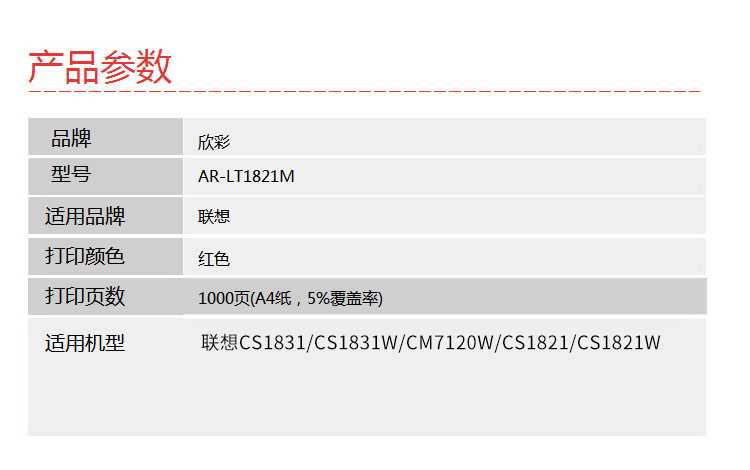 欣彩(Anycolor) AR-LT1821M 1000页 适用联想CS1831 CS1831W 粉盒 1.00 只/支 (计价单位:支) 红色