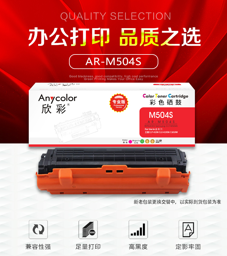 欣彩(Anycolor) AR-M504S 1800页 适用三星 CLP-415N 粉盒 1.00 只/支 (计价单位:支) 红色