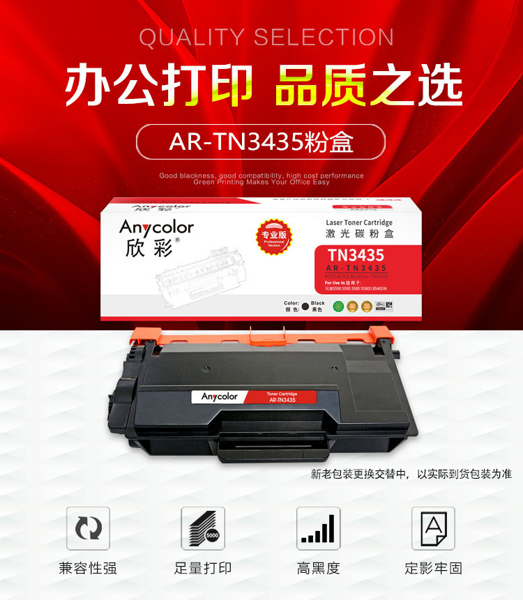 欣彩(Anycolor) AR-TN3435 3000页 适用兄弟5590 5595 粉盒 1.00 只/支 (计价单位:支) 黑色