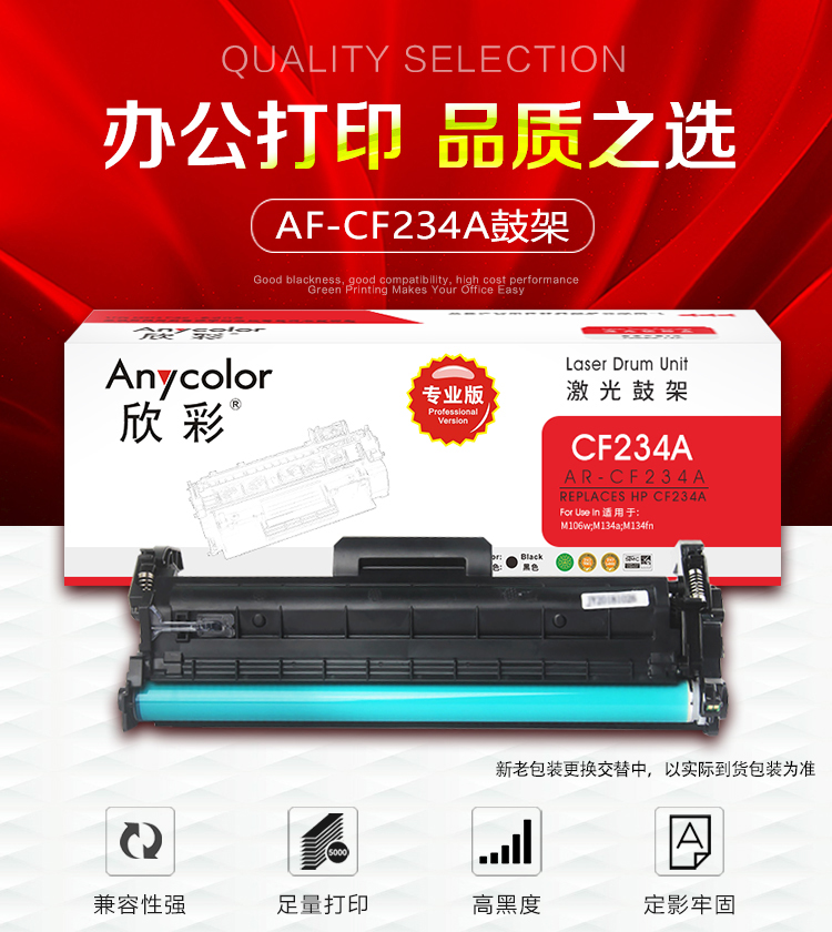 欣彩 AR-CF234A鼓架 专业版硒鼓带芯片 适用惠普HP 34A M106w M134a M134fn 黑色